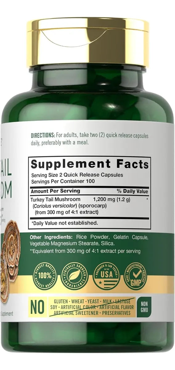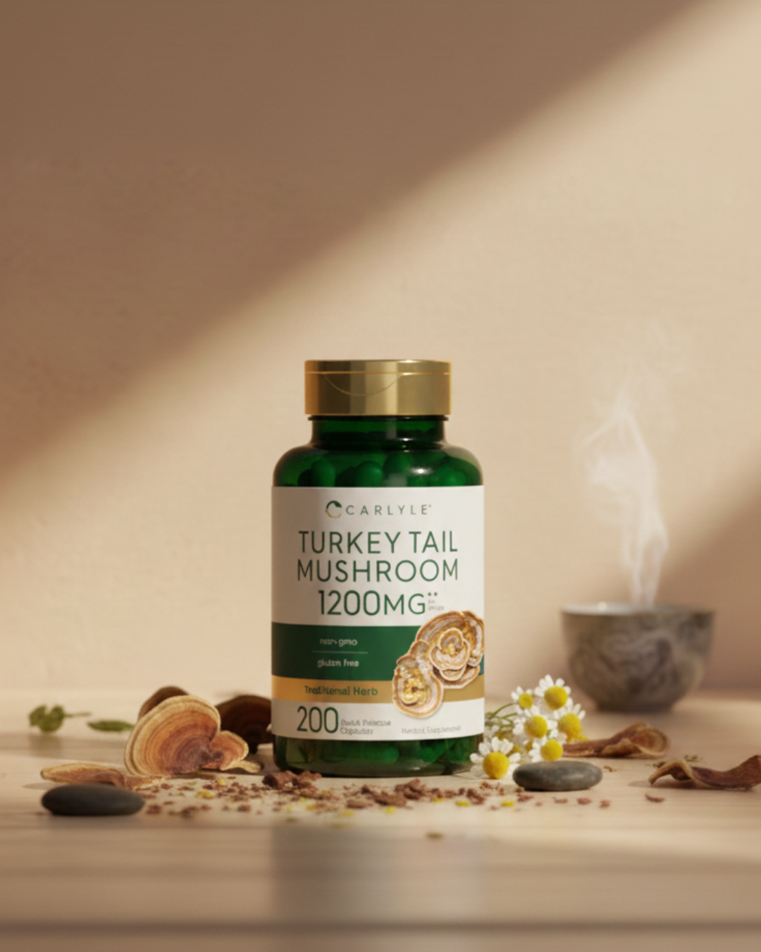 Las Cápsulas de Hongo Cola de Pavo 1200 mg de Carlyle ofrecen un apoyo inmunológico potente y respaldado por uno de los hongos funcionales más estudiados del mundo.
