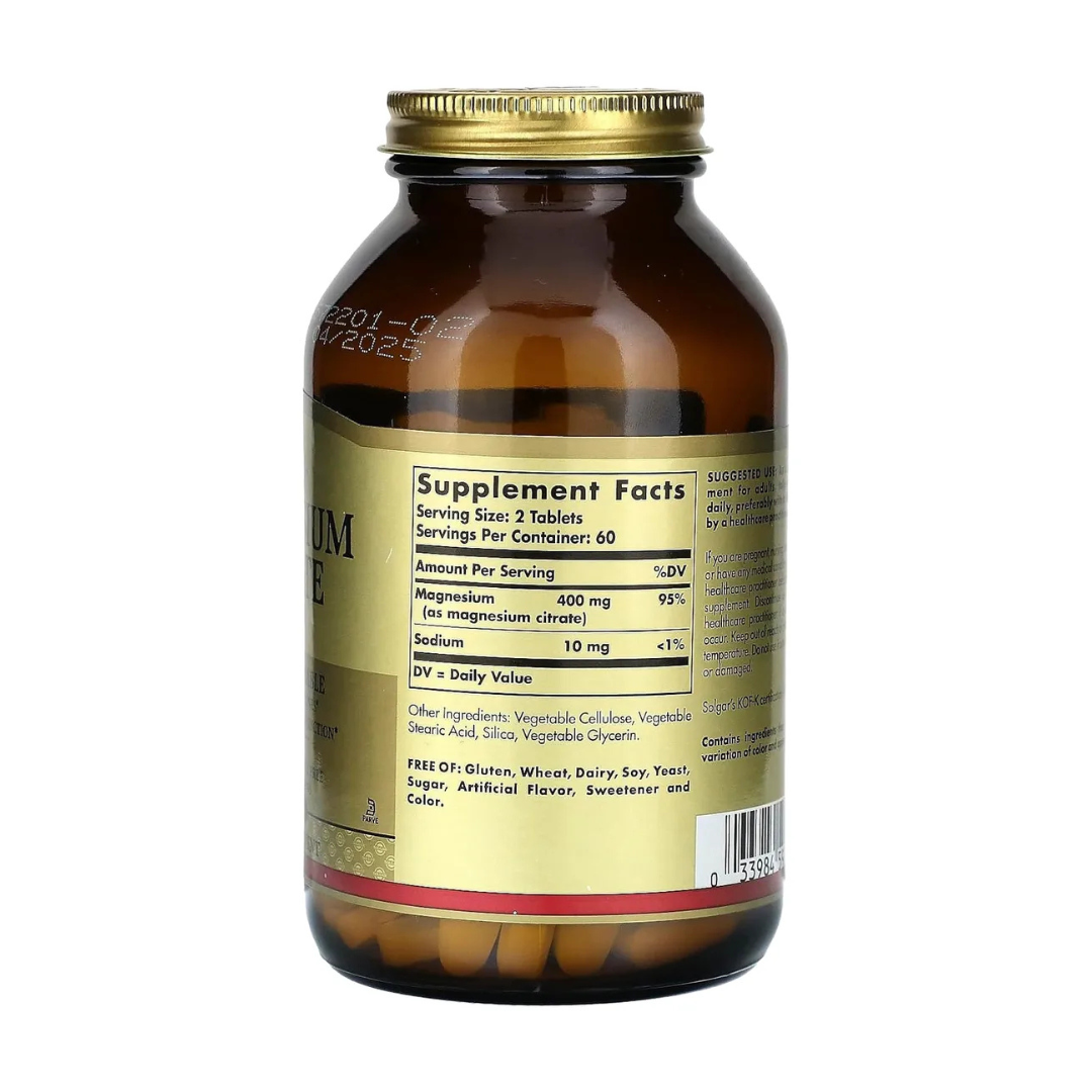- 1 frasco con 120 tabletas de Citrato de Magnesio Solgar